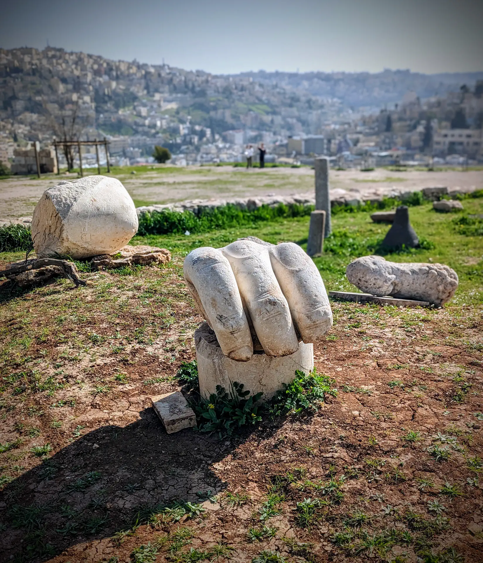 We saved both the Citadel and the Roman Theatre for our return to Amman so the group joining us after first completing their Egyptian portion wouldn’t miss out. The Citadel has an impressive 360-degree view of the city and has been occupied by many different civilizations dating back to the Neolithic period. The ruins of the Temple of Hercules are still there along with the only remaining appendages of a statue of Hercules: his three fingers and an elbow. Did you hear the reason Hercules faced off with Cerberus? Someone triple-dog-dared him! 😂