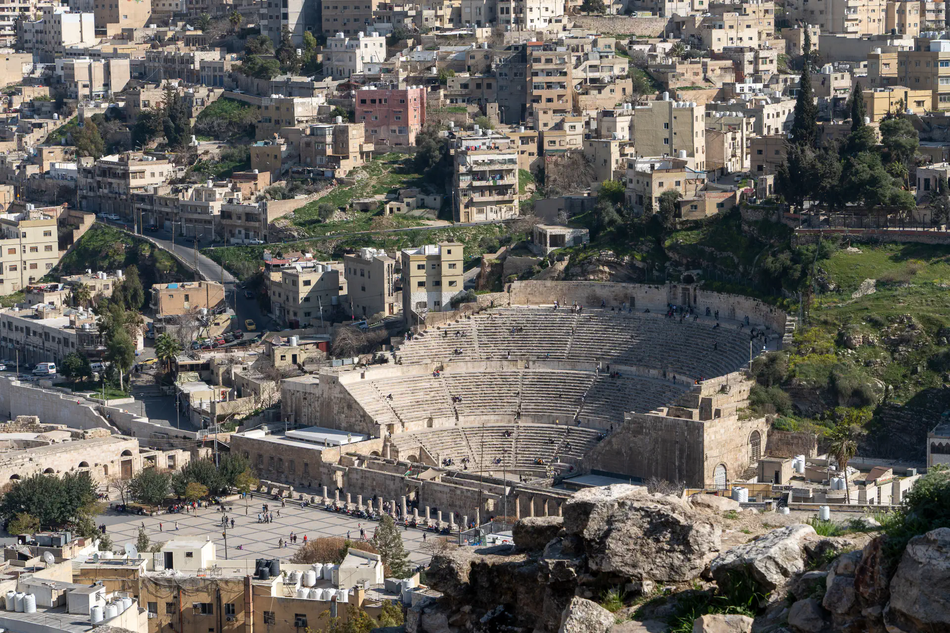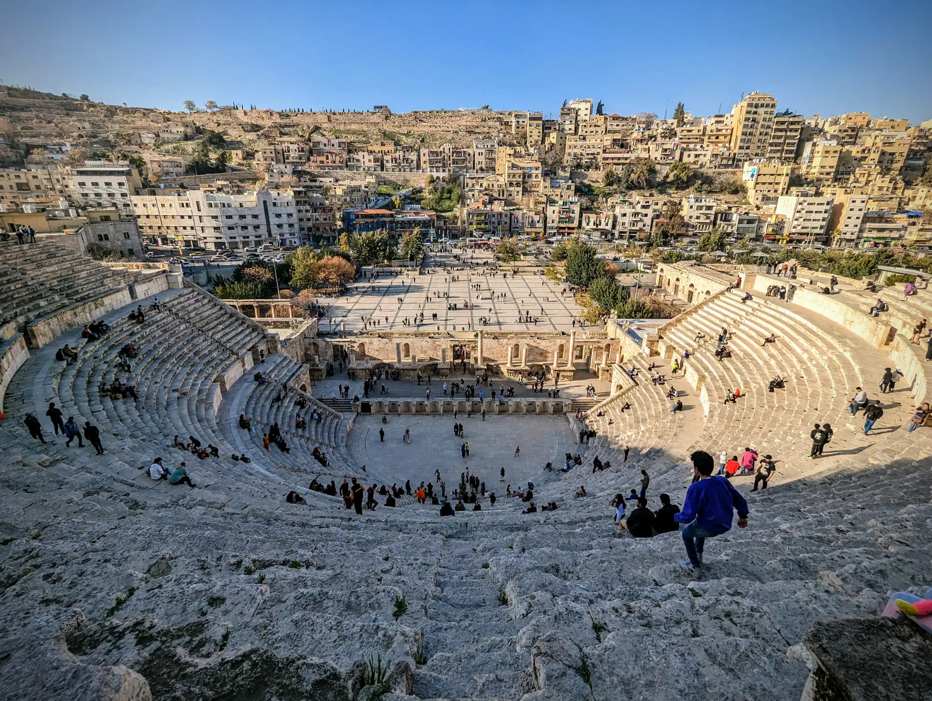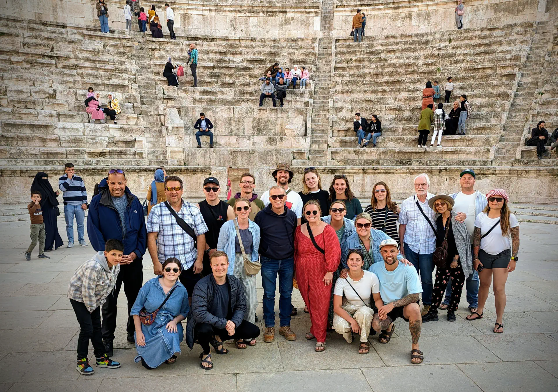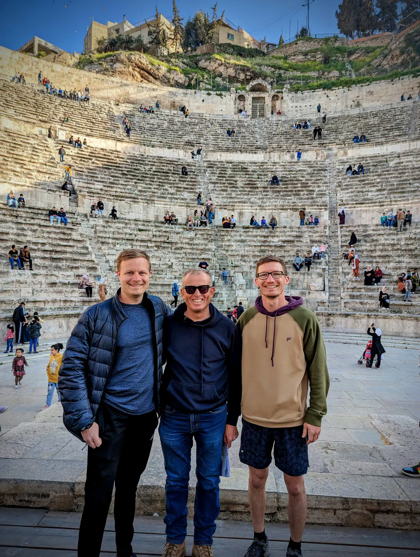 The Roman Theatre dates back to the 2nd century and can seat 6,000. It’s regularly used as a venue for cultural activities. We visited on a day when it was open late and enjoyed the hike to the top and back down. We got the obligatory group photo at the end which was inevitably photo-bomed by a local kid. Heath and I also got a separate one with our kind and knowledgeable guide Faisel.