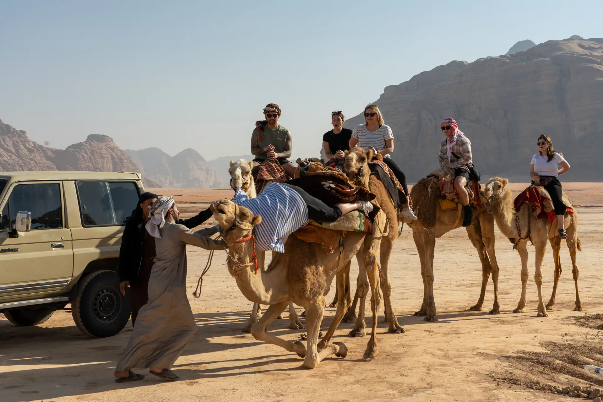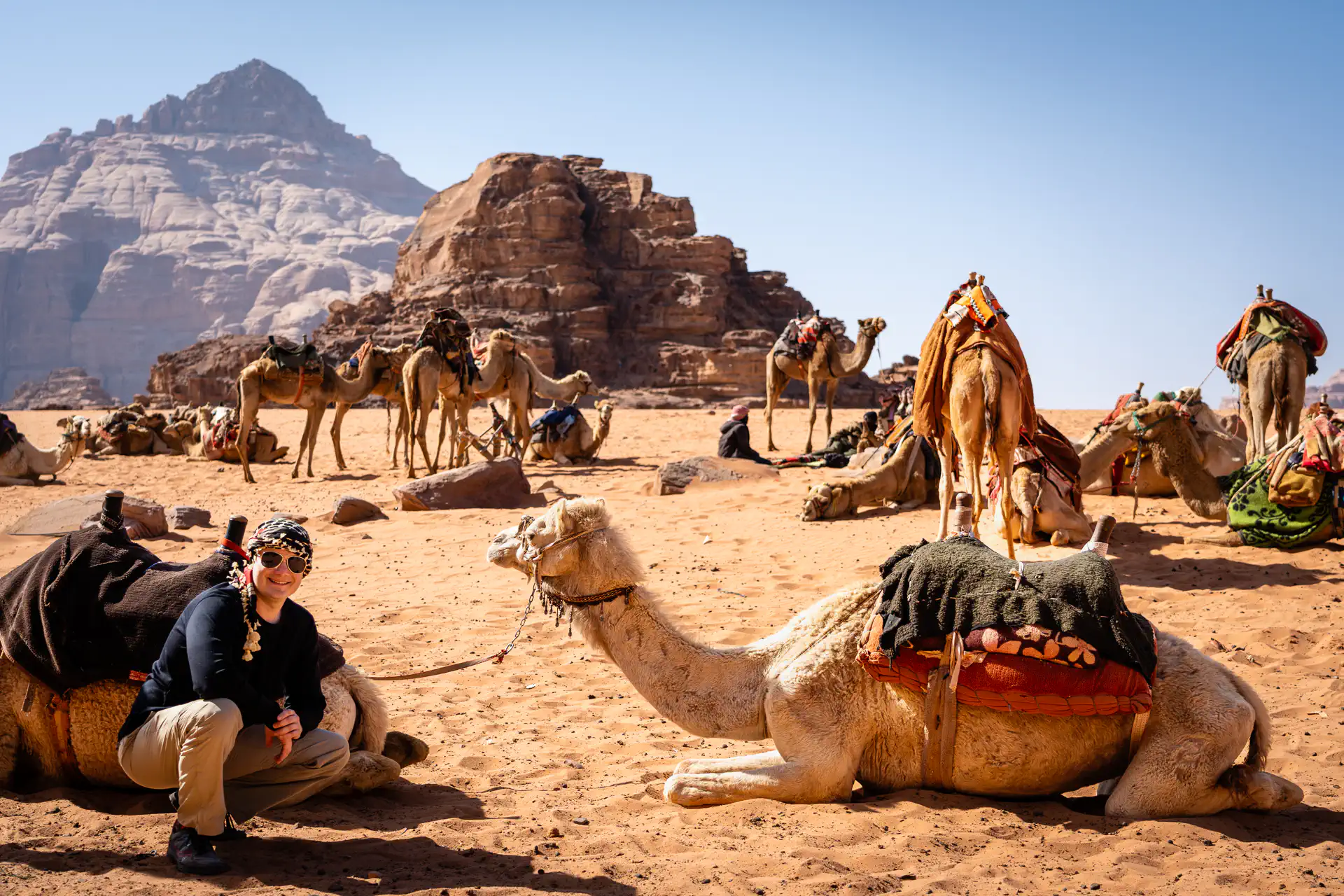 After our guide checked into our camp, he left with the bus to pick up the group from Egypt who had taken a boat from Dahab traversing the Gulf of Aqaba. We had the afternoon to explore and relax. The rest of our group paid $17 USD for a camel ride. Since I’ve been on a camel ride through the Sahara, I abstained. I did go to take pictures for the rest of the group. If you’ve never been on a camel before, they are quite tall, so the easiest way to mount one is for the camel to first kneel. It’s important to lean back as they get up because they raise their hind legs first which momentarily positions the rider into a precarious tilting position. One of our group members hadn’t quite mastered this technique, which turned from horrification to humor after learning that both she and the camel were okay. My brother Heath later narrated that he heard me slowly taking pictures at first with a “click…..click…..click”, but as she began to topple forward he noticed my rhythm changed to a “clickclickclickclickclick”. 🤷 I have no defense, but I am a fan of some of the facial expressions I captured at that moment!