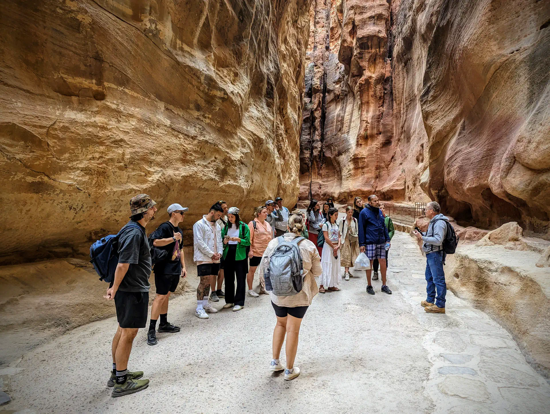 We started the day with a delicious spread at The Petra Moon Hotel before heading out to experience Petra. Our guide led us through the Siq showing us how the Nabataeans carved channels along the entire Siq to collect and transport water away from the city. There were also high passes carved into the walls that allowed for the defense of the city in case of attempted invasion.