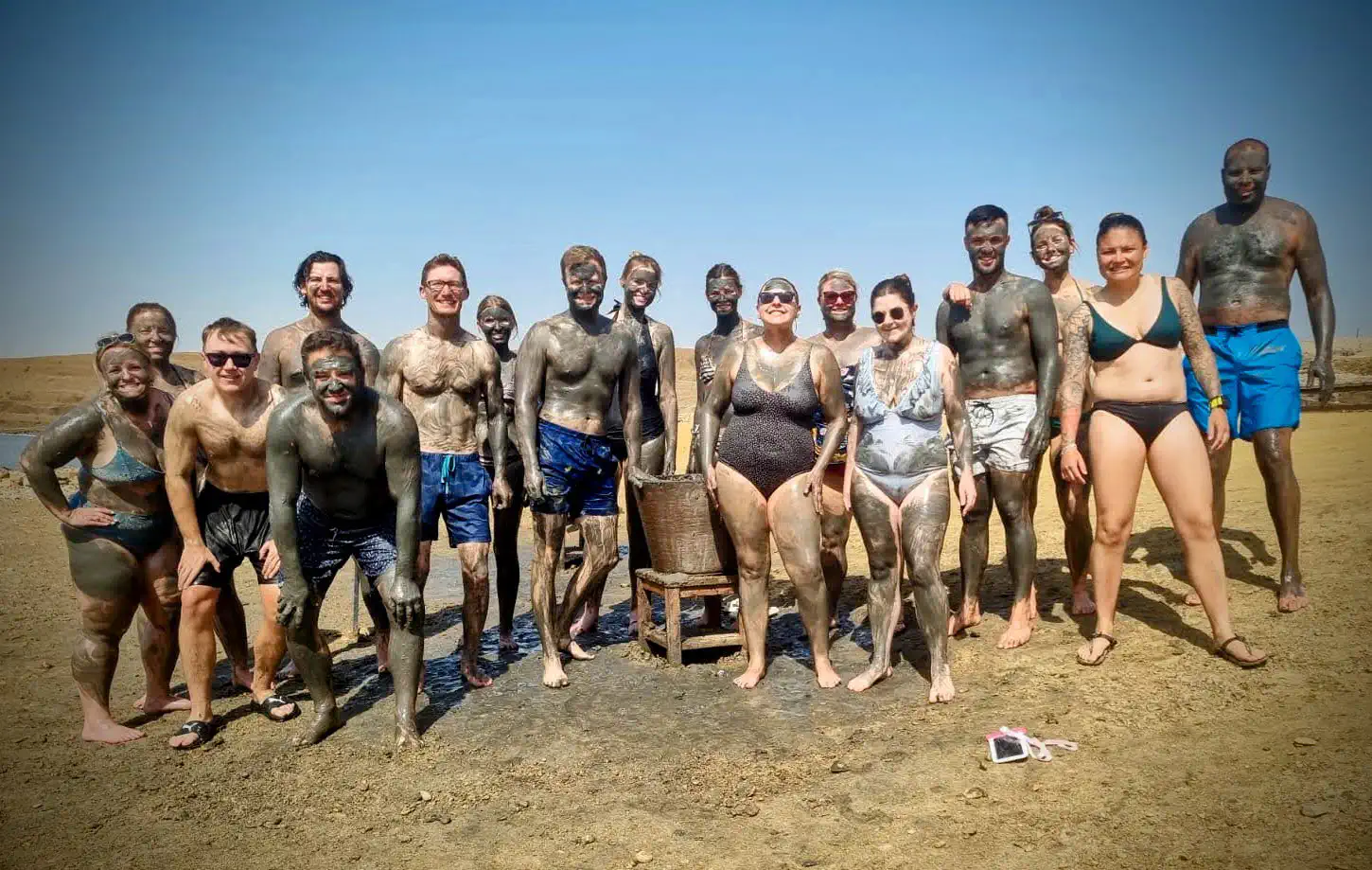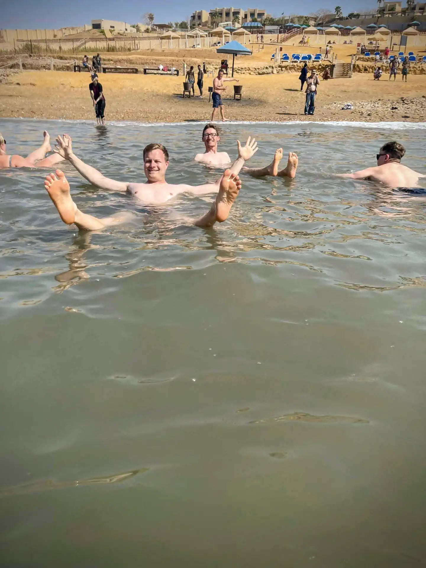 We stopped at the Holiday Inn Resort on the Dead Sea to experience the lowest point of dry land on Earth. The mud there ostensibly has medicinal benefits, and the resort stocked large vats of it on the beach. After floating for a bit, we caked ourselves in it. It is an unnatural feeling to “sit” in the water and stay there with no effort. We were warned against submerging our faces because a mouthful of water with a salinity level of 34% is not great for one’s health. It’s about eight times saltier than the ocean which makes it incredibly dense.