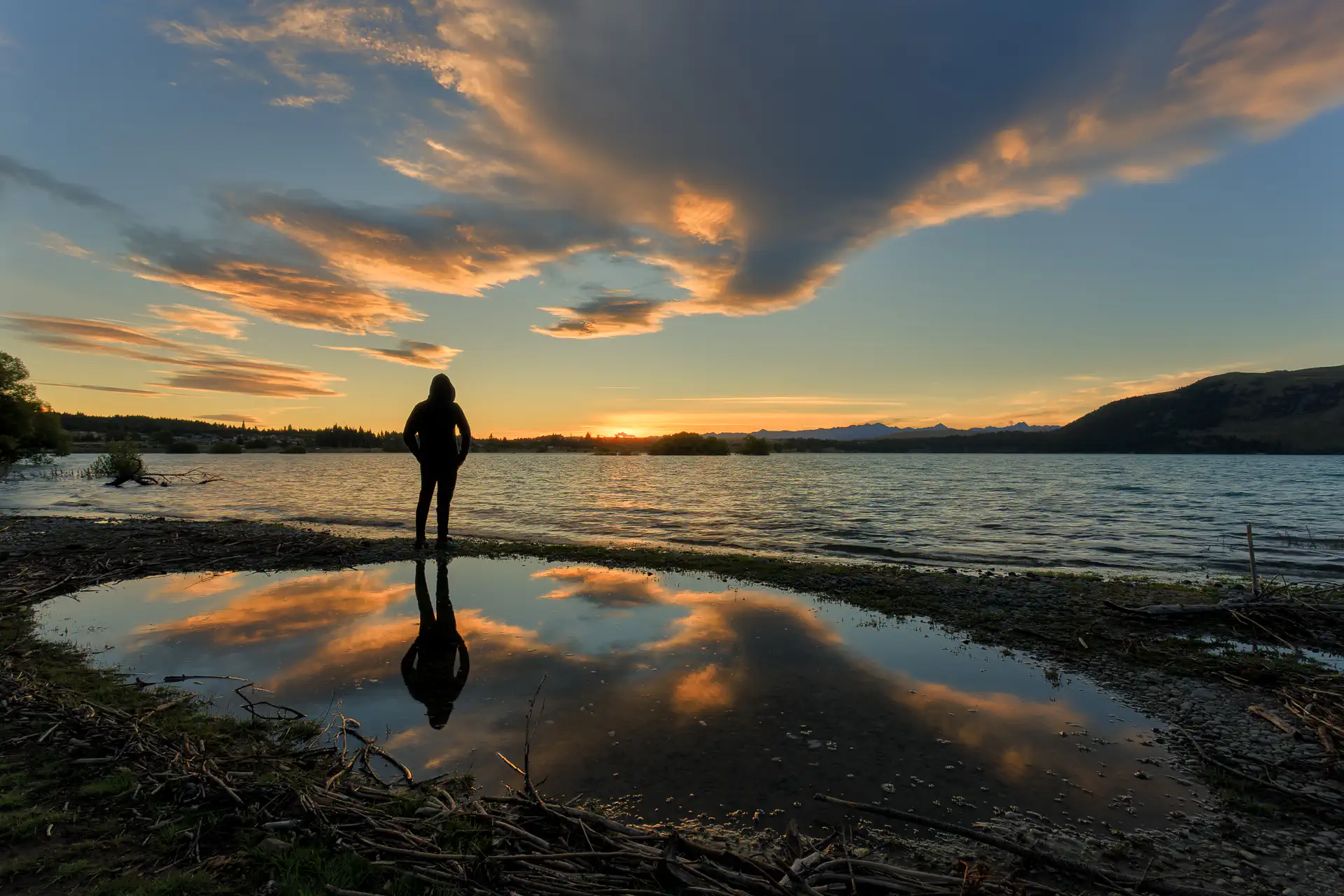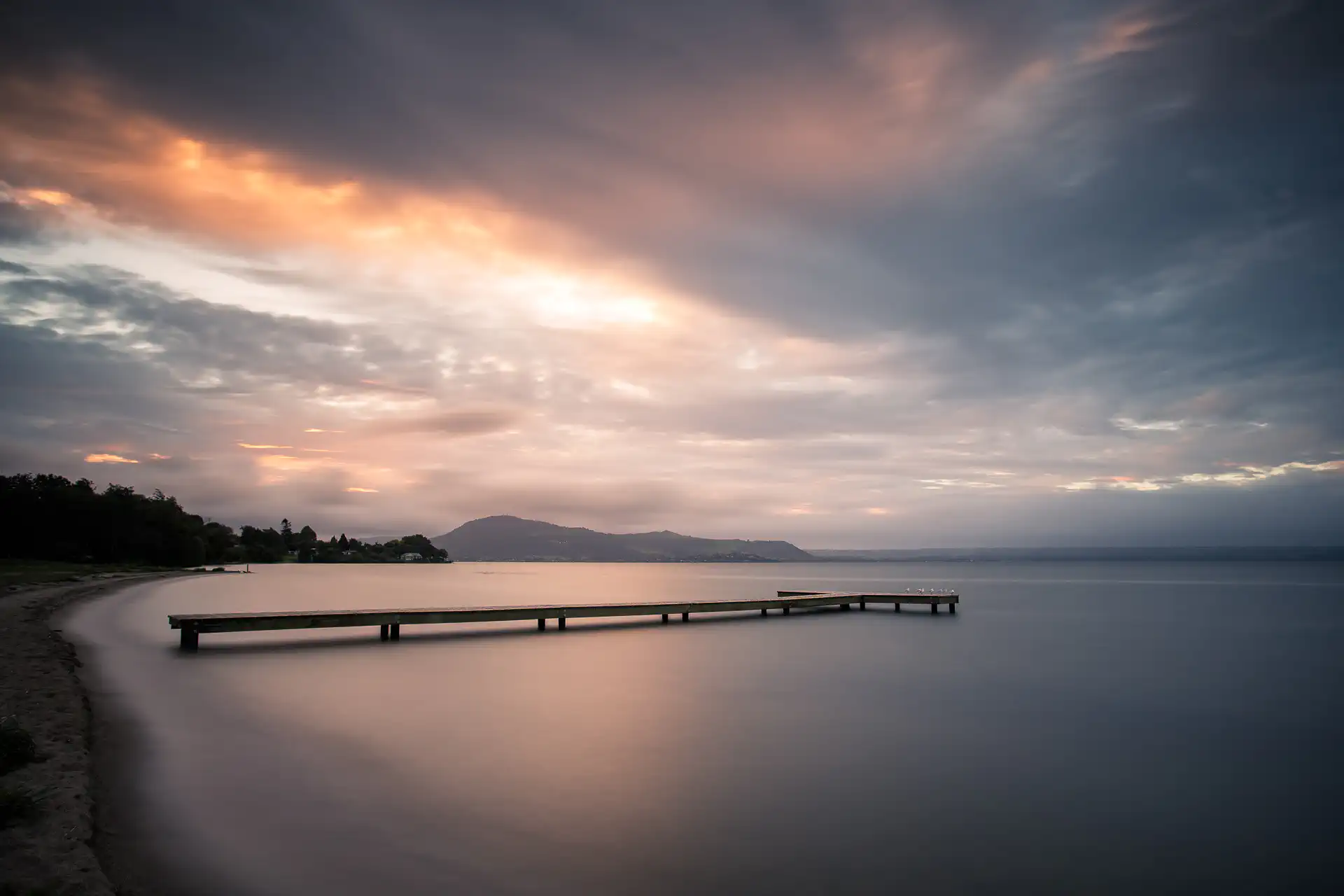 The Tongariro Day Hike is an extremely popular all-day hike often done from TaupĆ, however, our streak of bad weather continued, so our experience was rather miserable. It rained off and on and there was low fog that obscured most of the views. But, the next morning, I woke up early and the sky looked like it was going to explode in color, so I grabbed my camera gear and started driving trying to find a last-minute location. I ended up at a random dock on the west side of Lake Taupo and suddenly all the poor weather seemed to make restitution!