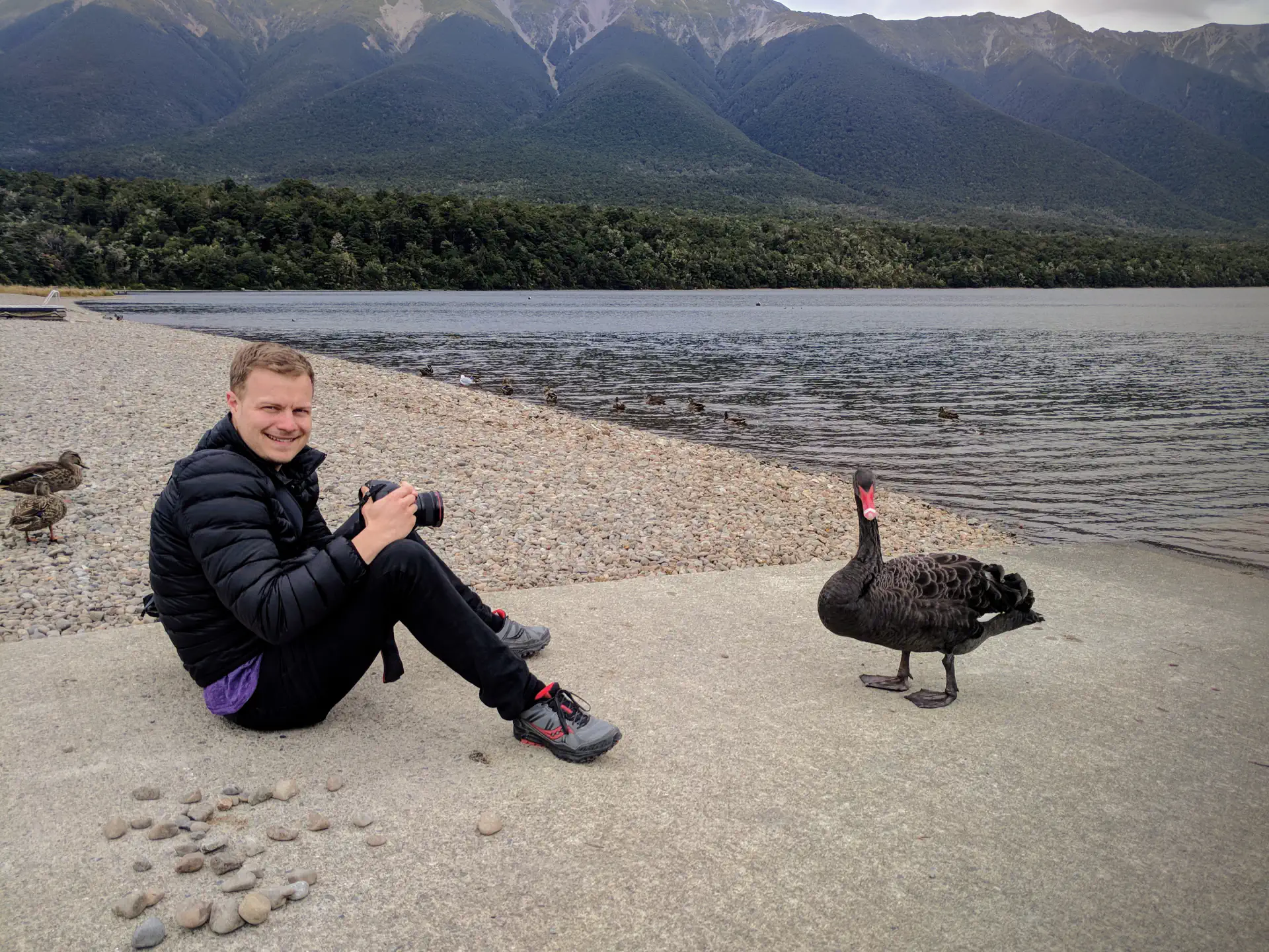 Due to earthquake damage, the fast route through Kaikoura to Picton was closed, so we had to go on a much longer detour. But on the way, we stopped off at Lake Rotoiti where Nassim Taleb would be pleased to know I discovered not one but TWO black swans. What are the odds?