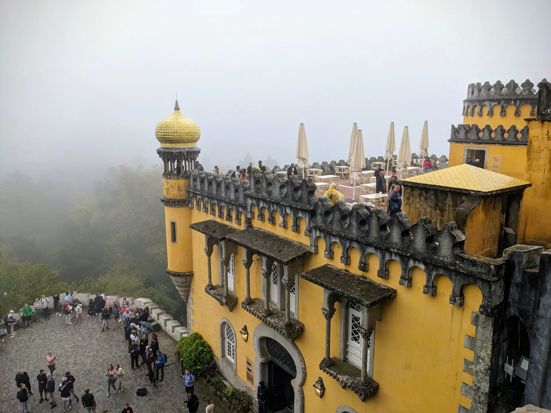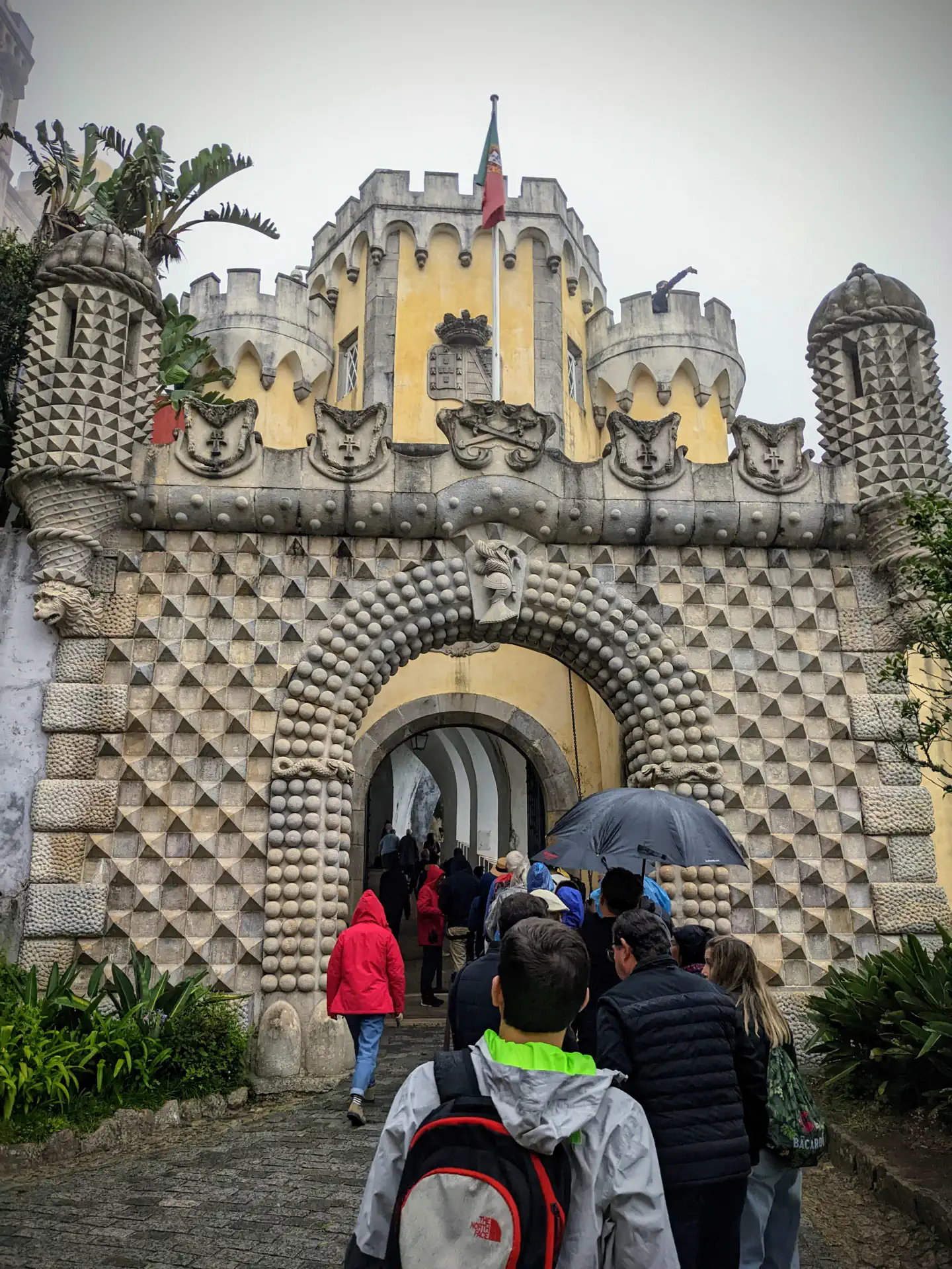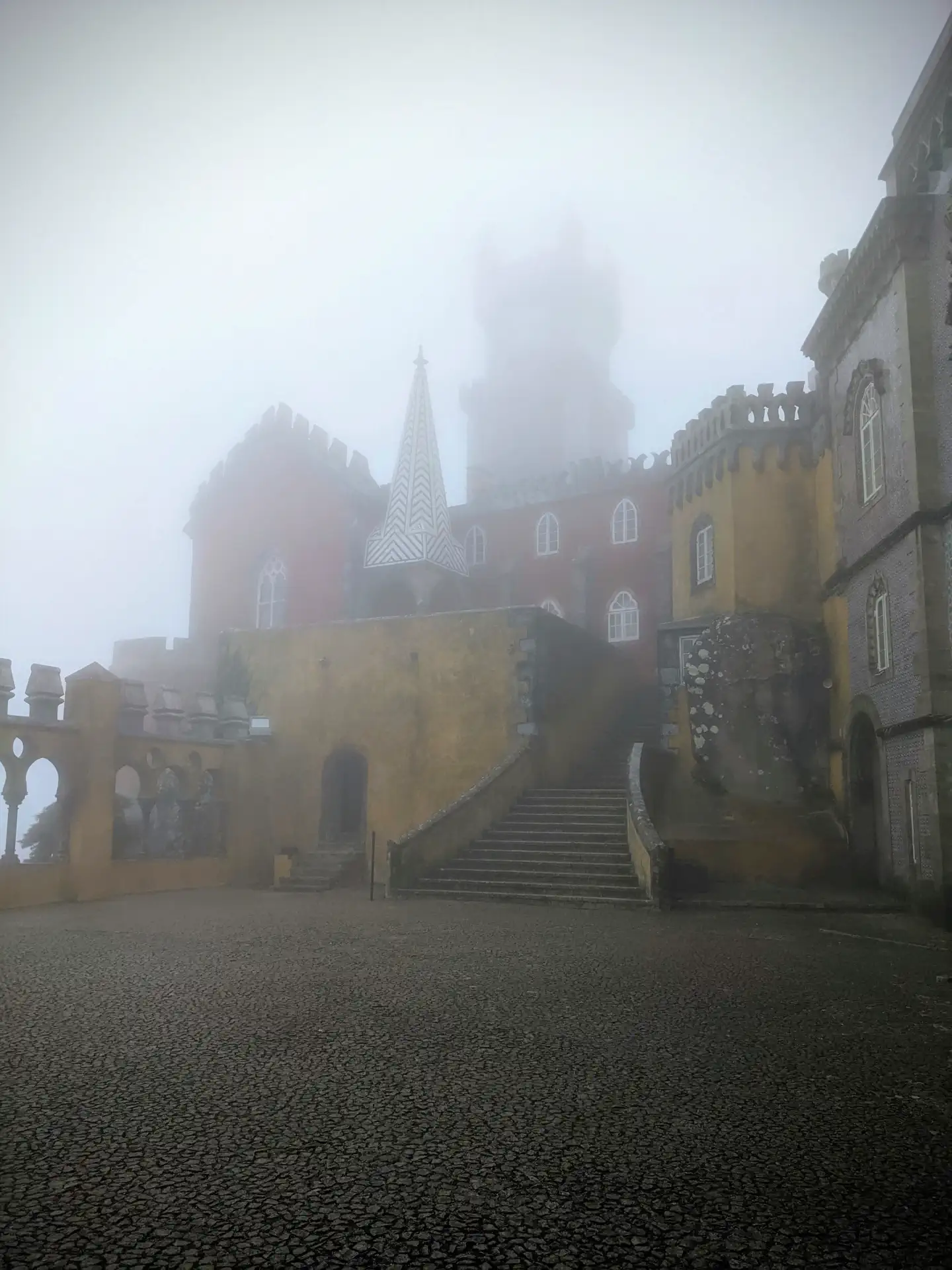 We thought we had plenty of time to make it to Pena Palace but ended up being late due to the lack of parking and miscommunication between us and our cab driver who refused to take us to the entrance. The girls were waiting for us when we arrived, so we began to explore. It turned into a cold, rainy, foggy day, but we made the best of it. The Pena Castle is a mix of color architectural styles which gives it a Candy Land vibe. It would definitely be worth going back again in nicer weather to see all the vibrant colors against the blue sky.