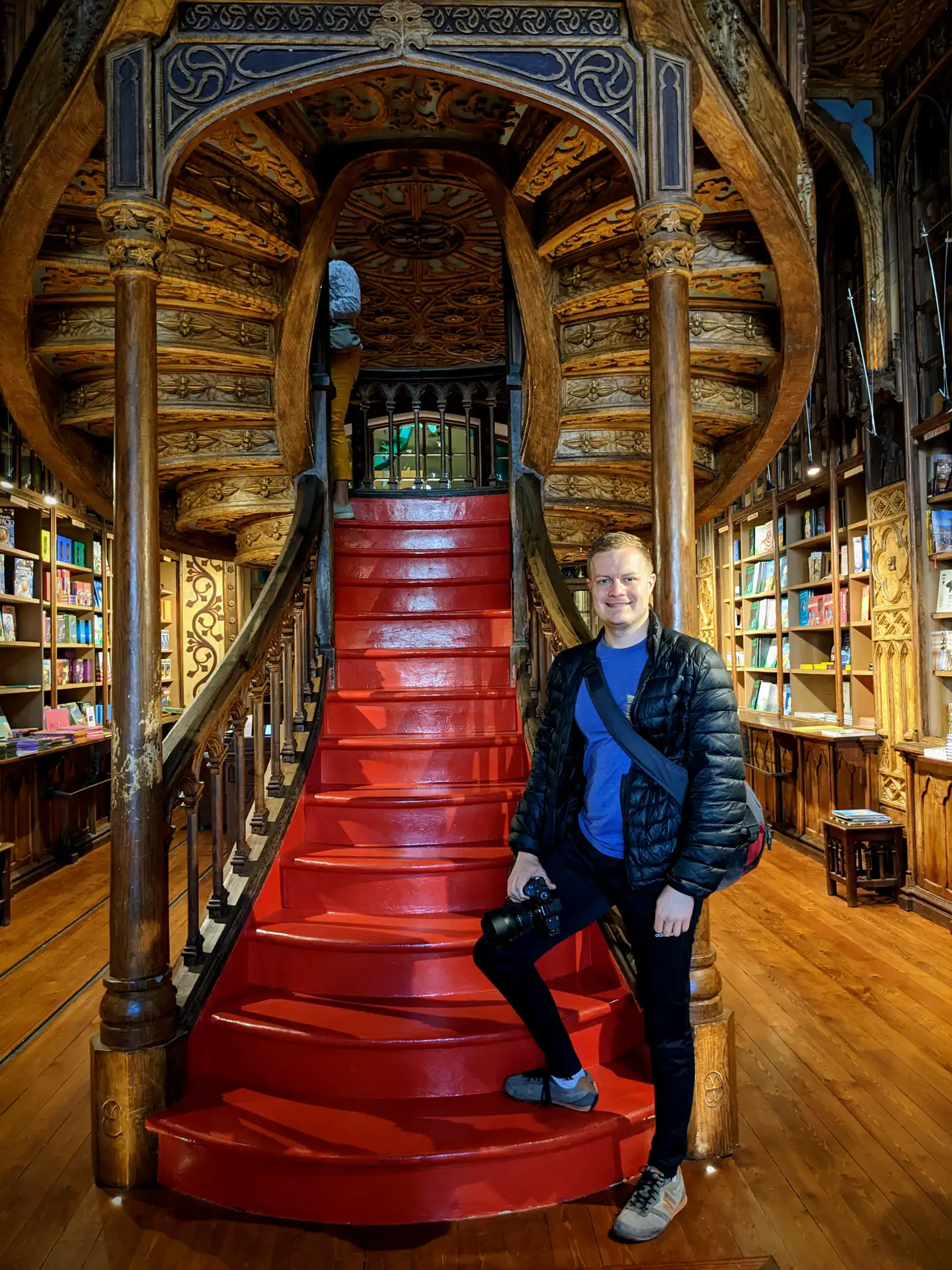 Porto is the second largest city in Portugal and lends its name to the famous Port wine grown and made in the nearby Douro Valley. From 1991-1993 a young muggle named Joanne Rowling taught English there. The charm of the city inspired the world of Hogwartz, and she started writing the first few chapters of Harry Potter and the Philosopher’s Stone including her favorite chapter ‘The Mirror of Erised’ while living there. The lore is woven into the fabric of the city. Diagon Alley’s favorite bookstore Flourish and Blotts is similar to the beautiful Livaria Lello. Nobody else wanted to wait in line with me to check it out, so I went 45 minutes before opening to join the already-long line and walked up the most beautiful spiral staircase in the world! I also saw groups of local university students who walk around in what looks like wizarding robes; they were just missing the colorful house ties. The Majestic Cafe is rumored to be the place where she wrote.