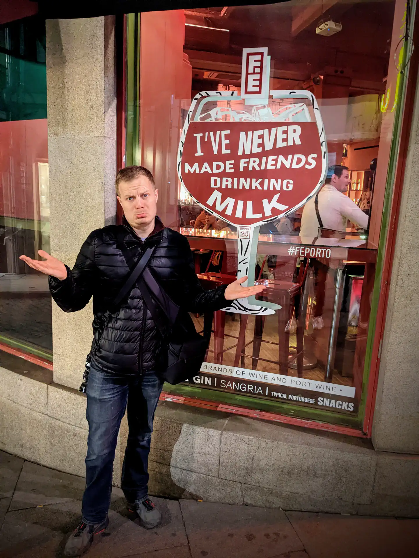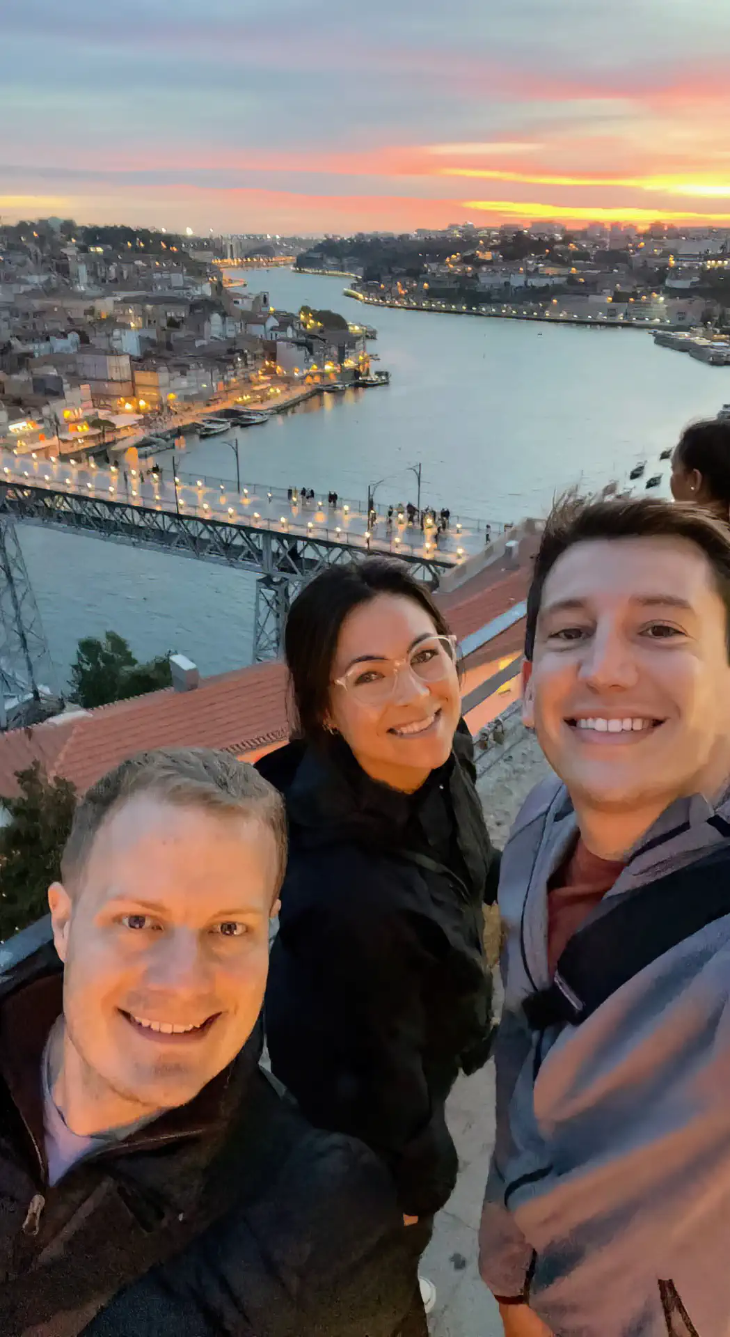 I’ve always loved bridges, and Porto has a great one: the Ponte de Dom Luis I. It was built by Teófilo Seyrig a business partner of Eiffel (you may have heard of his tower). It opened in 1886 as a double-decker: one on top of the arch and the other suspended below it. Although it was originally designed to carry road traffic, the top is now used by Porto Metro trains as well as pedestrians brave enough to walk across the Douro River 60 meters below! On the first night we visited, there was an incredibly slow burn of a sunset which we enjoyed thoroughly.