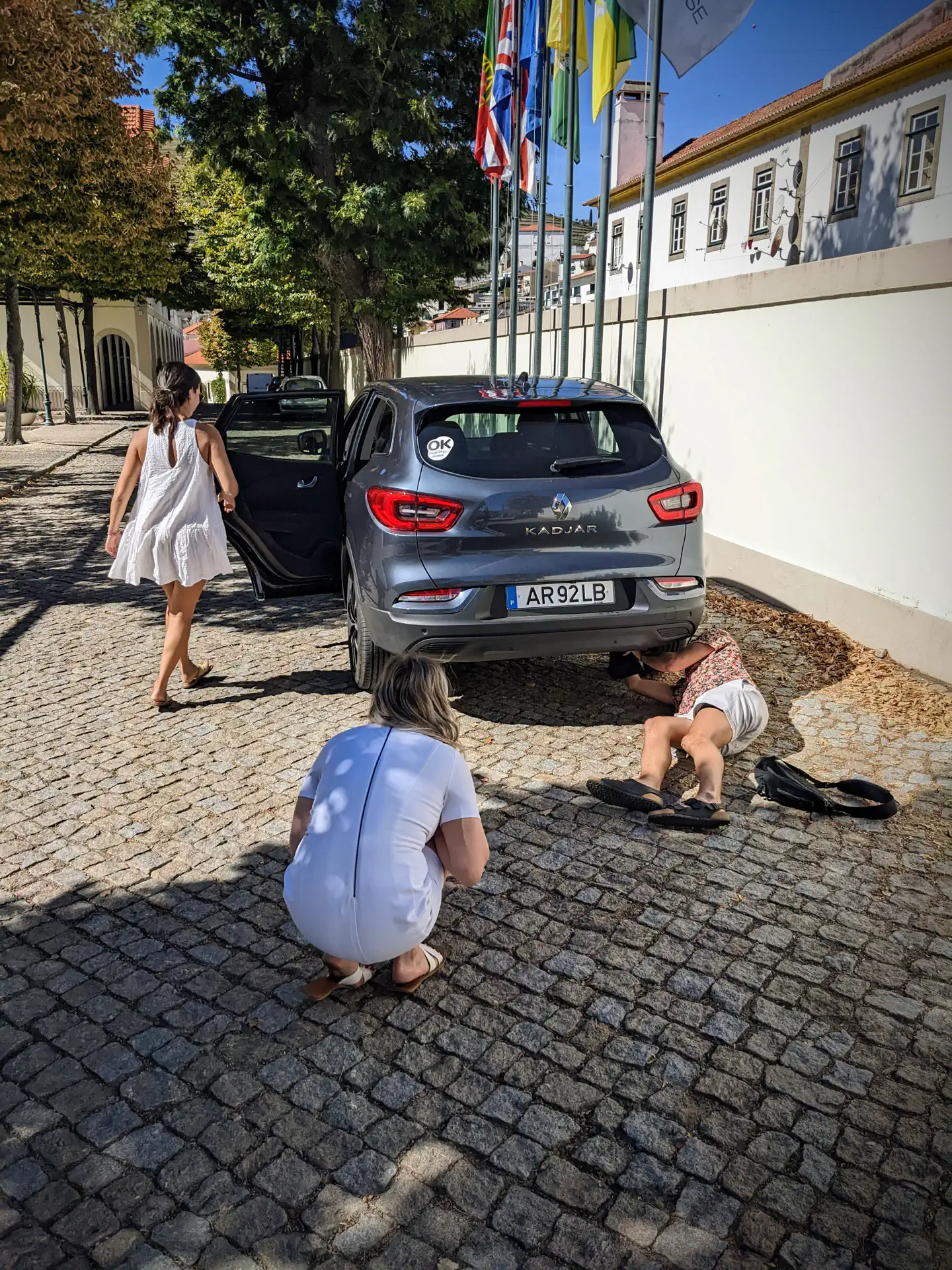 We did have a fun adventure with our rental car that required some slight mechanical fortitude. White dresses aren’t the best when it comes to working with cars, so I got on my back and was able to get everything back in its proper place!